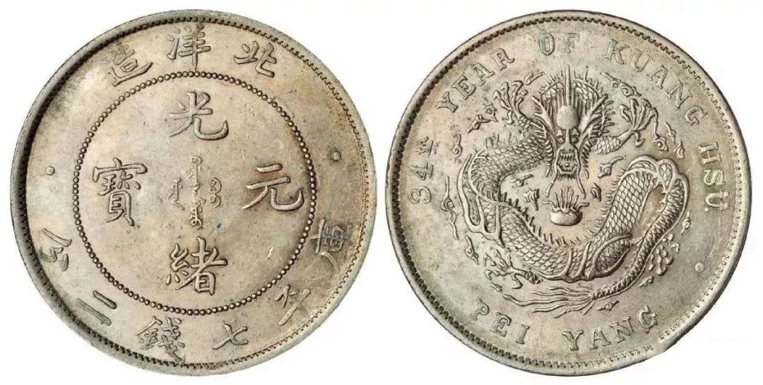 光绪元宝,北洋33年:通货品相3800元左右,原生态全龙鳞4000—6000元,品级价格差异极大。