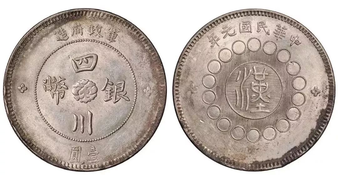 四川银币,军政府造:通货品相1000元+,美品在1500元+。