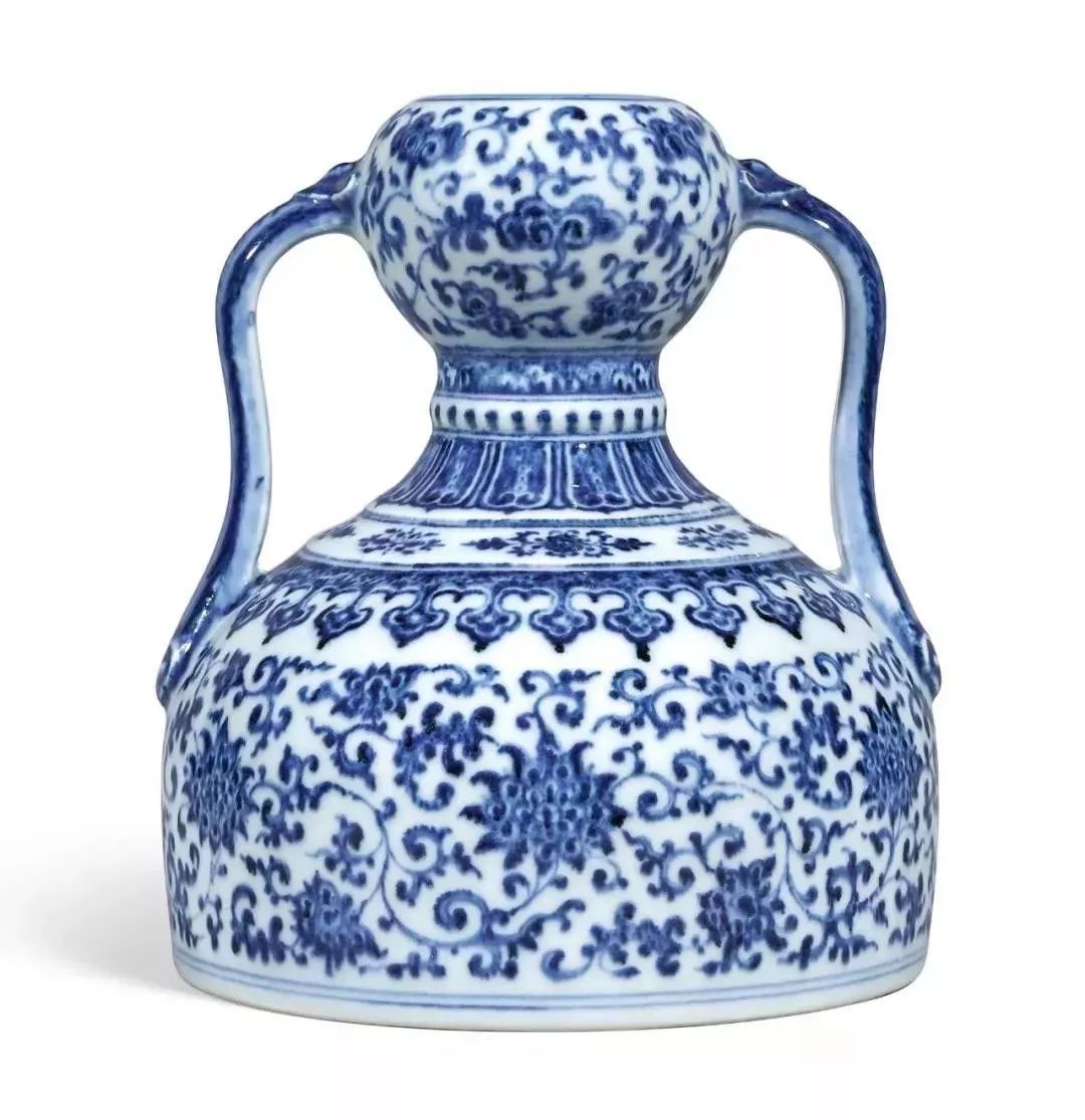 清乾隆 青花缠枝瑞芝莲纹双耳葫芦尊