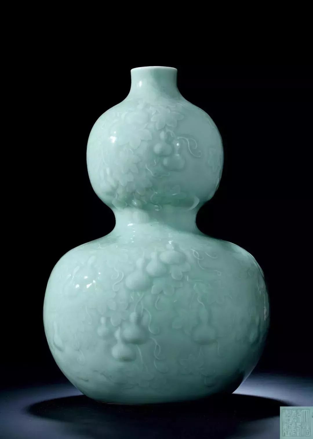 清乾隆 粉青釉浮雕「子孙万代」图葫芦瓶