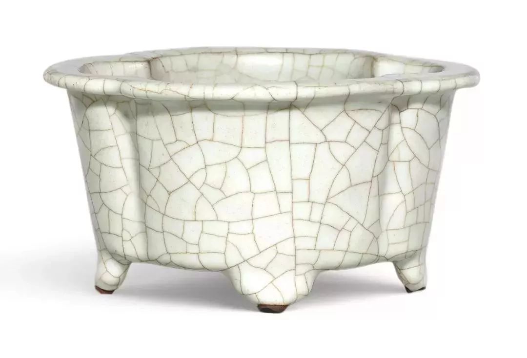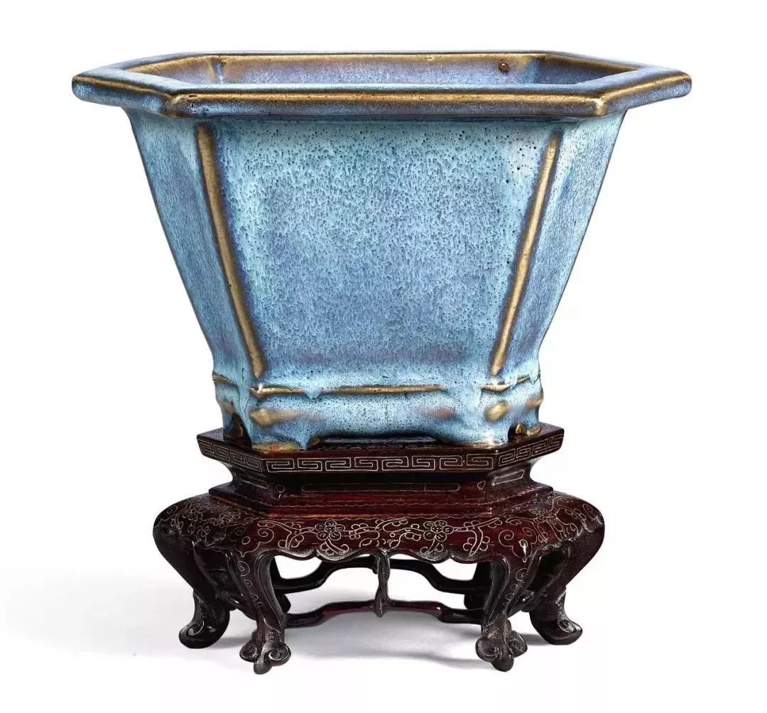明初 钧窰天蓝釉六方花盆 底刻「十」字