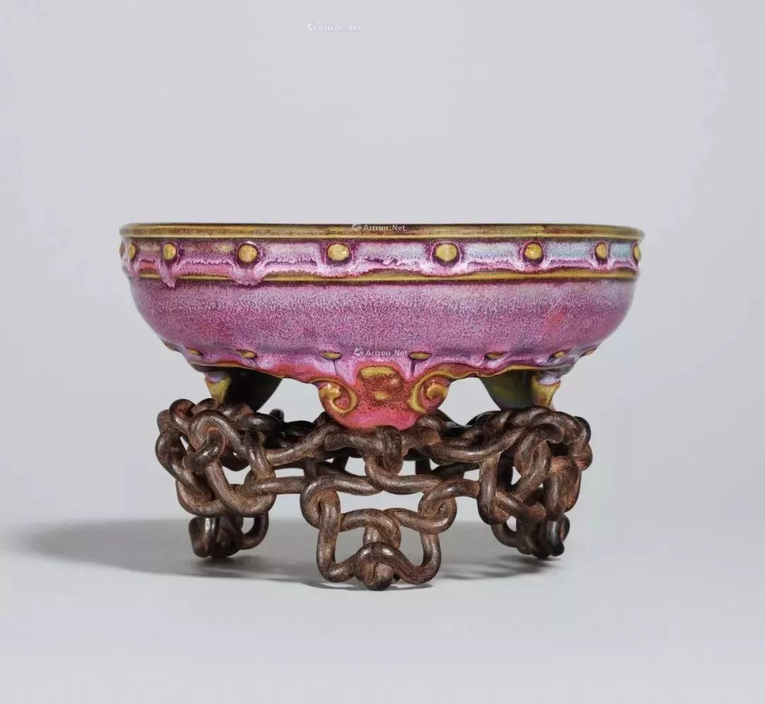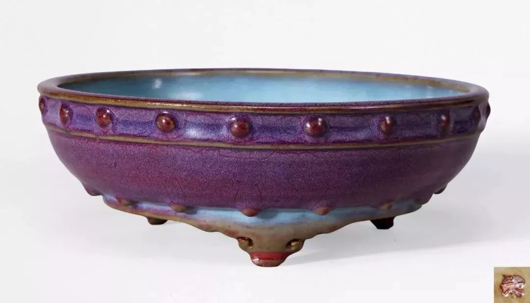 5(2)2753 元/明 钧窑玫瑰紫釉鼓钉三足水仙盆