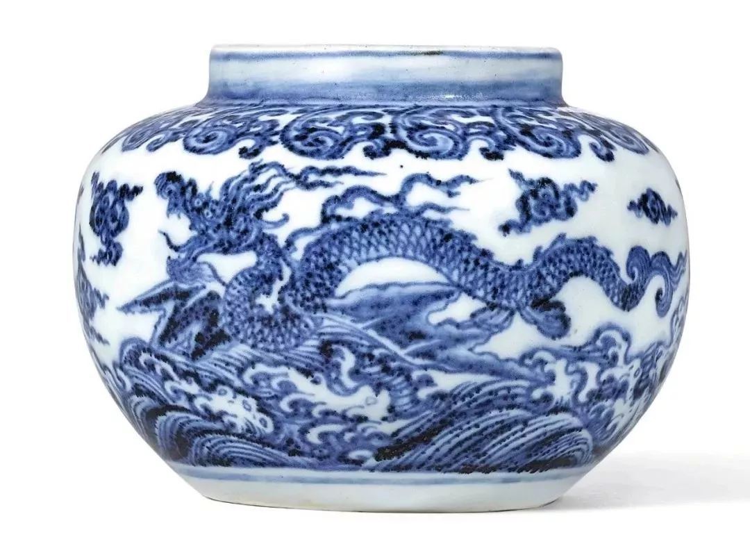 明永乐至宣德初期 青花海水腾龙纹小罐