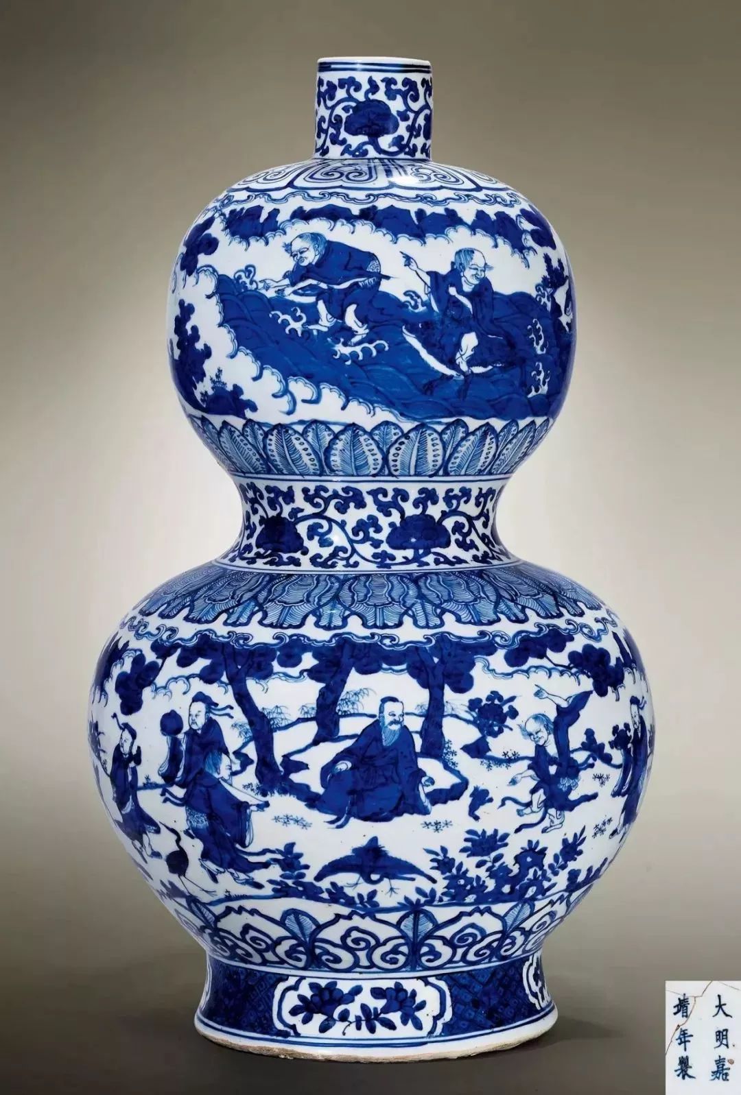 明嘉靖 青花群仙祝寿大葫芦瓶
