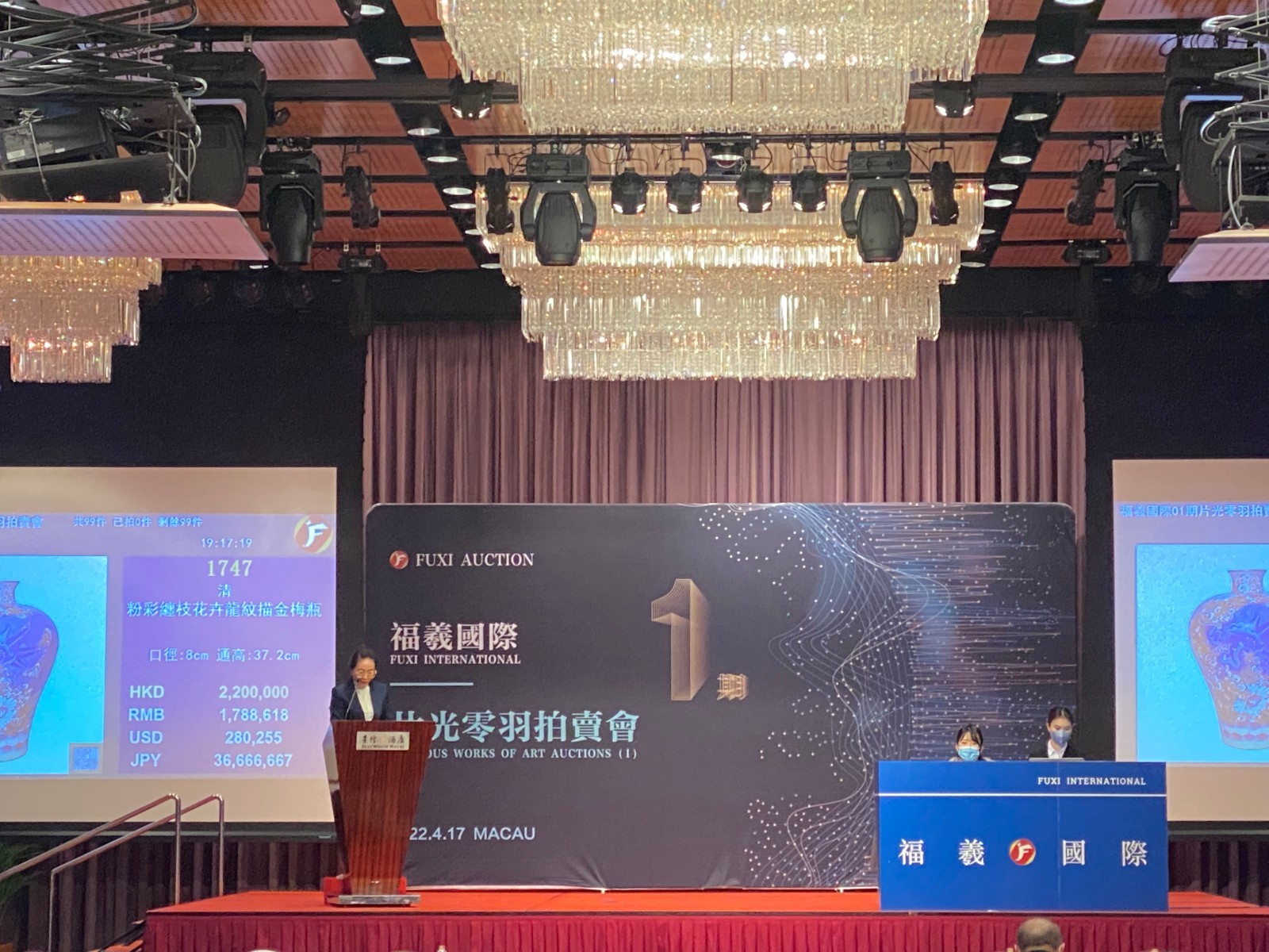 2022年04月17日晚7时,“澳门片光零羽拍賣會”如期举槌。99件拍品的品质则坚守一贯的高标准,精美拍品让众藏家连连“剁手”。【福羲国际】微信小程序平台报价不断刷屏,结拍时间一再顺延,人气爆棚,成交踊跃。斩获54.5%的成交率及48,807,000元的总成交额,圆满收官。