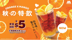 栗子金團批 加入原粒栗子及以栗子、蕃薯及砂糖熬煮成甘甜綿密的栗子蓉,帶來雙倍甘甜美味!軟糯的口感配搭香脆的炸批,一次滿足兩種口感!芒果甜橙冰茶 以MOS Burger人氣芒果冰茶作基底,加入甜橙片,令甘酸果味更濃郁,清爽解膩!